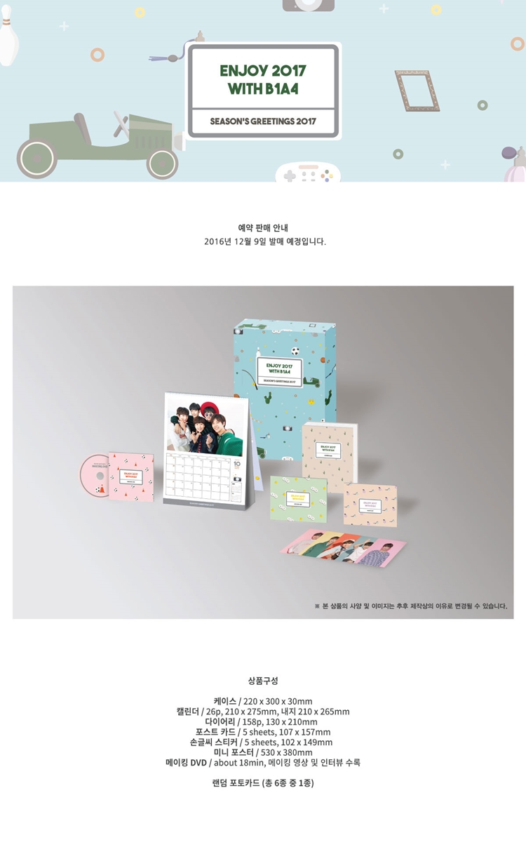 비원에이포 (B1A4) - B1A4 2017 시즌그리팅 (B1A4 Season’s Greetings) [DVD+캘린더+다이어리+포토카드 (6종 중 1종 랜덤)+포스트 카드+손글씨 스티커+미니 포스터]