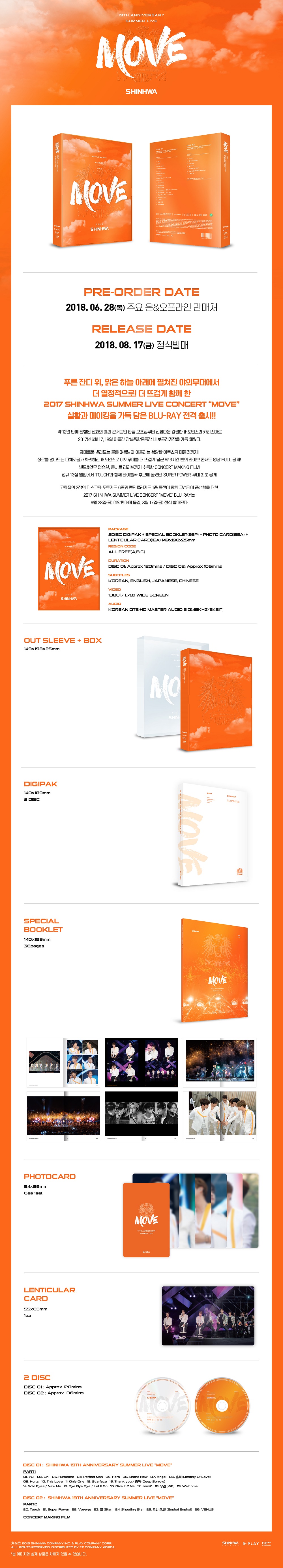 푸른 잔디 위, 맑은 하늘 아래에 펼쳐진 야외무대에서 더 열정적으로! 더 뜨겁게 함께 한 2017 SHINHWA SUMMER LIVE CONCERT “MOVE” 실황과 메이킹을 가득 담은 Blu-ray 전격 출시!!