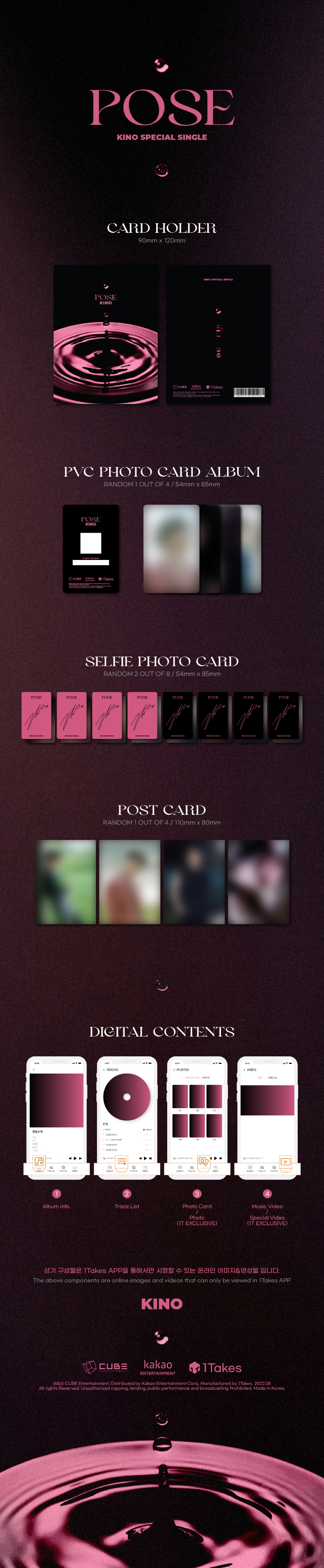 키노의 첫 솔로 앨범 [POSE]는 단 한 곡 안에 뚜렷한 감정선과 독보적인 퍼포먼스는 물론 모두의 눈과 귀를 사로잡을 다채로운 매력을 무한히 담아냈다. 또한 이번 신곡 'POSE'의 작사, 작곡진에 이름을 올리며 비주얼뿐만 아니라 아티스트로서 한층 성장한 키노의 모습을 선보인다.